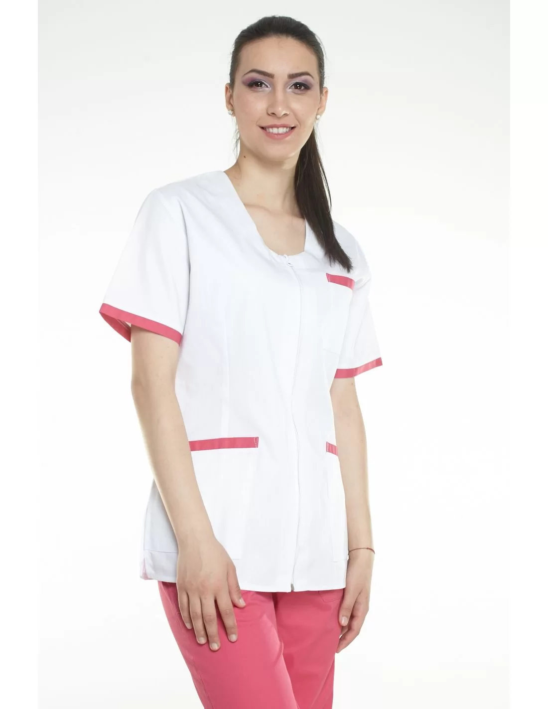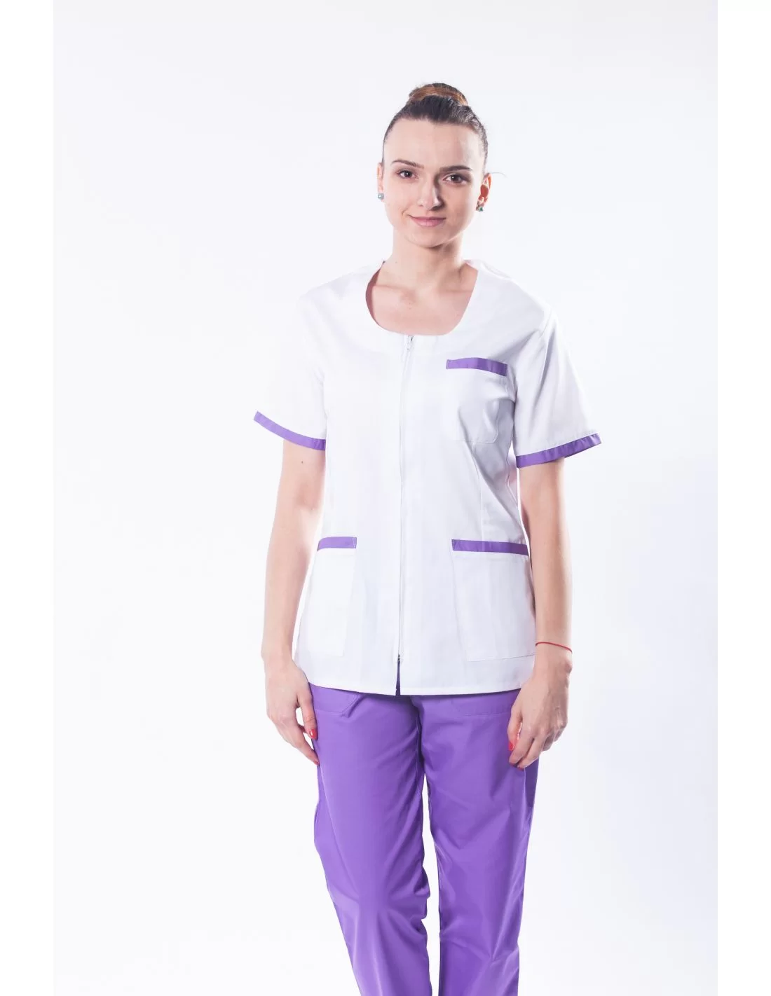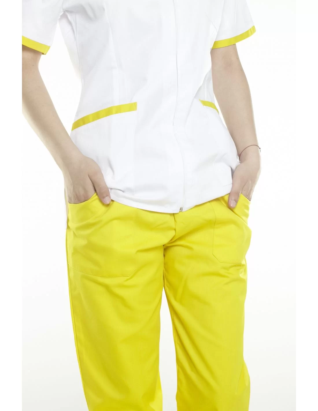 Costum medical femei model 02, 2 piese, bluza alba cu garnitura colorata