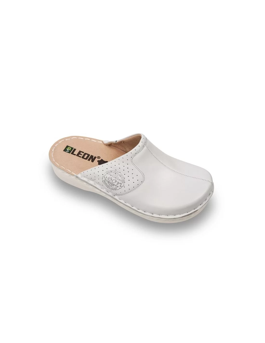 Saboti medicali dama, Leon 360, albi, piele naturala, ortopedici