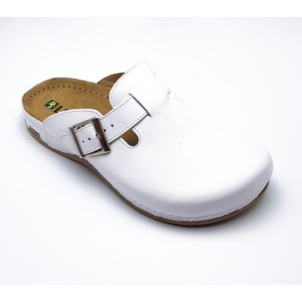 Saboti medicali barbati, Leon 707, albi, piele naturala, talpa de cauciuc